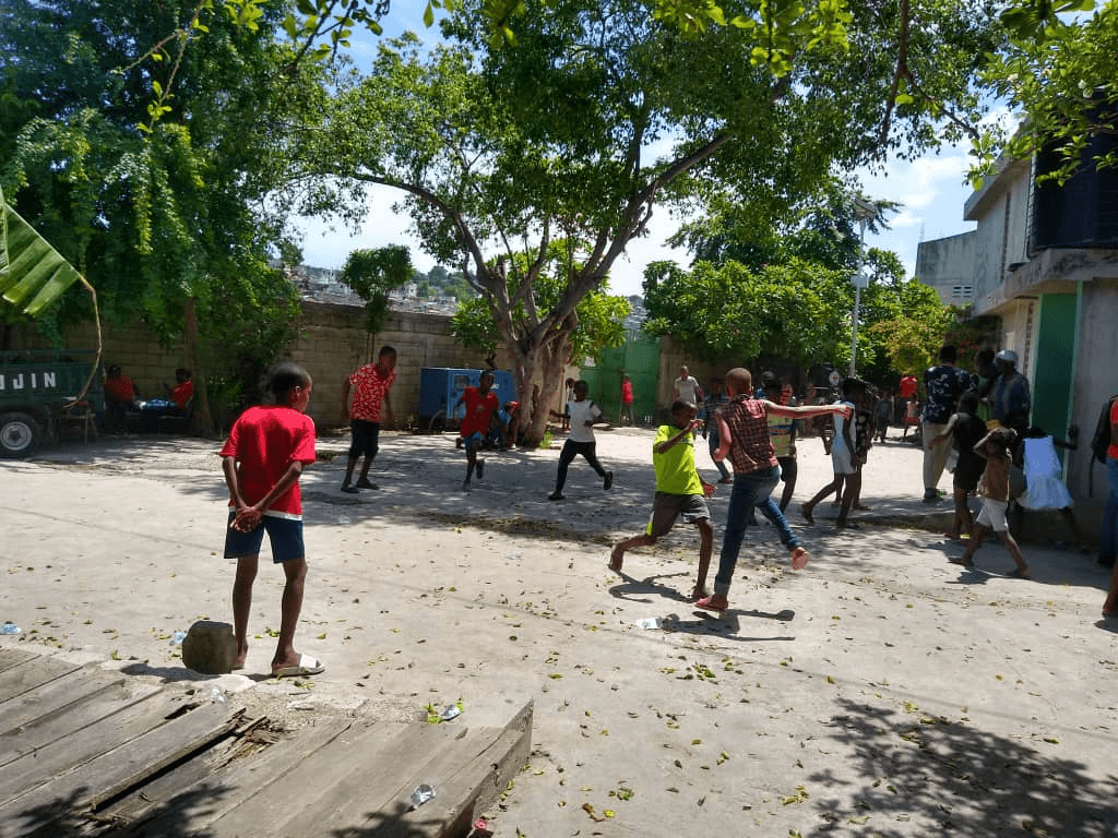 Nan yon abri pwovizwa nan katye Solino, kèk timoun ap jwe